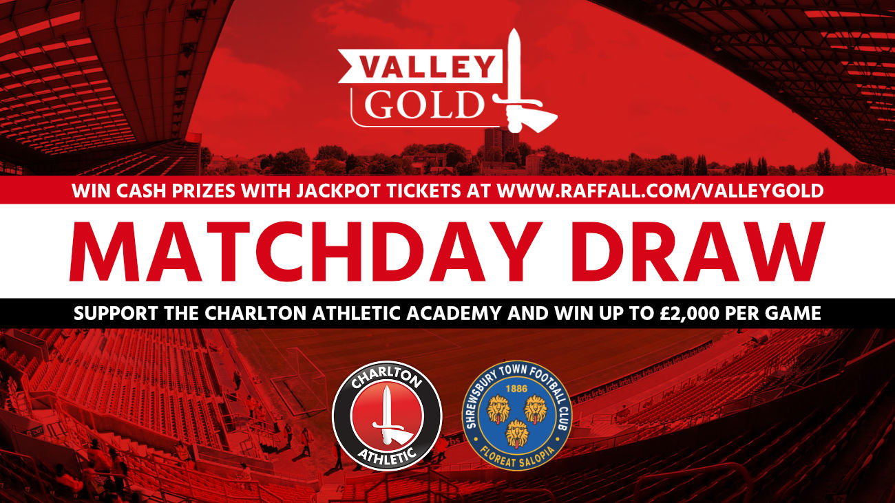 Be in with a chance of winning up to £2,000 during the half time interval of Charlton’s fixture against Shrewsbury Town with Valley Gold Jackpot Tickets.