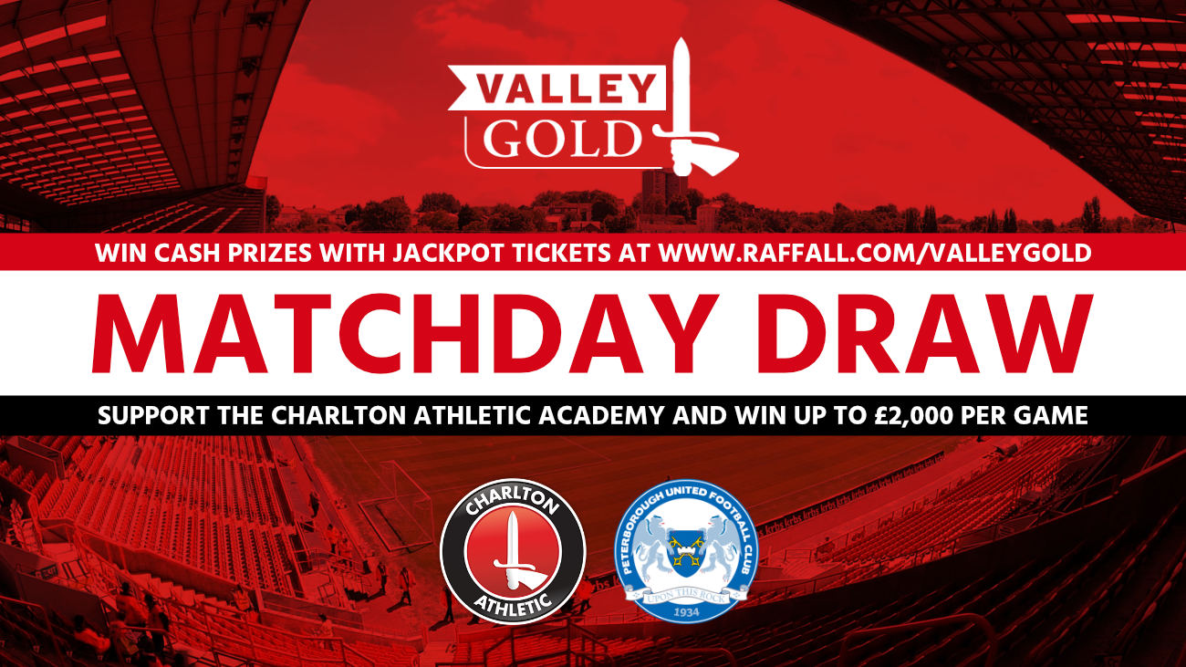 Be in with a chance of winning up to £2,000 during the half time interval of Charlton’s fixture against Peterborough United with Valley Gold Jackpot Tickets.