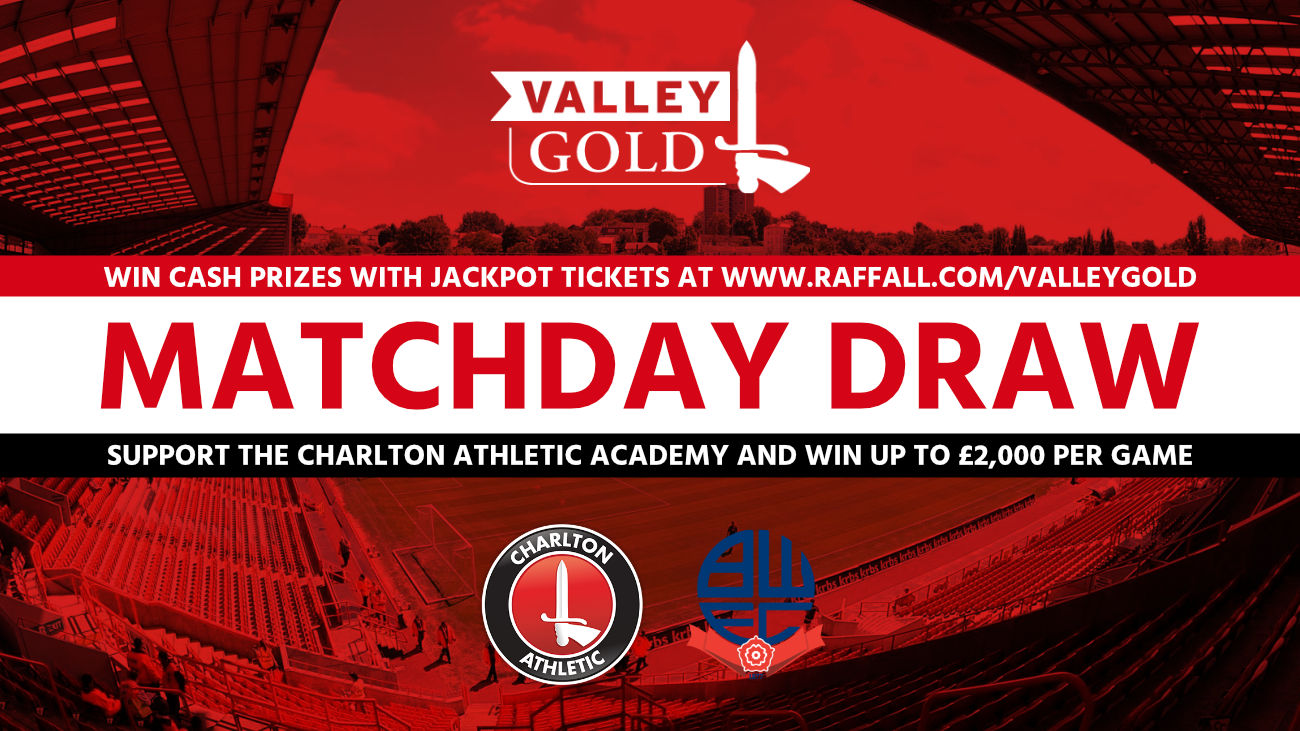 Be in with a chance of winning up to £2,000 during the half time interval of Charlton’s home fixture against Bolton Wanderers with Valley Gold Jackpot Tickets.