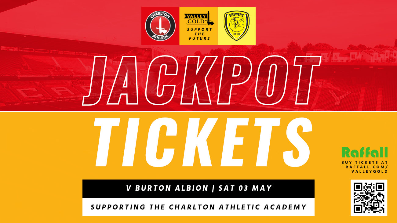 Be in with a chance of winning up to £2,000 during the half-time interval of Charlton’s home fixture on the final day of the 2024/25 season against Northampton Town with Valley Gold Jackpot Tickets.