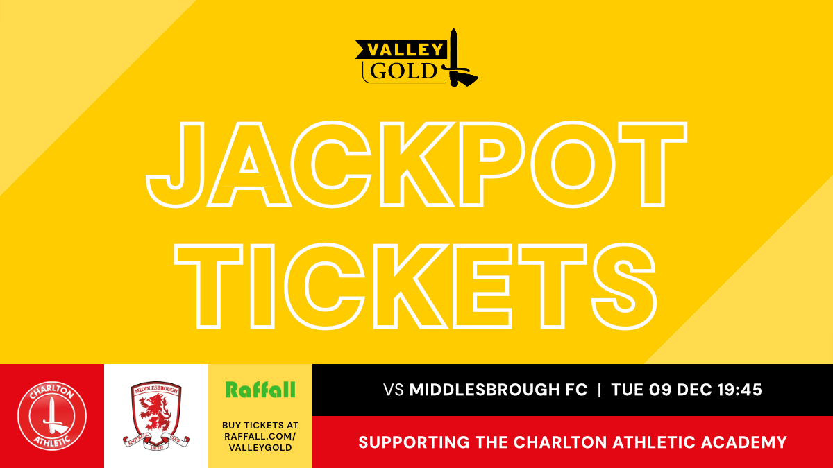 Be in with a chance of winning up to £2,000 during the half-time interval of Charlton’s EFL Championship home fixture against Middlesbrough FC with Valley Gold Jackpot Tickets.