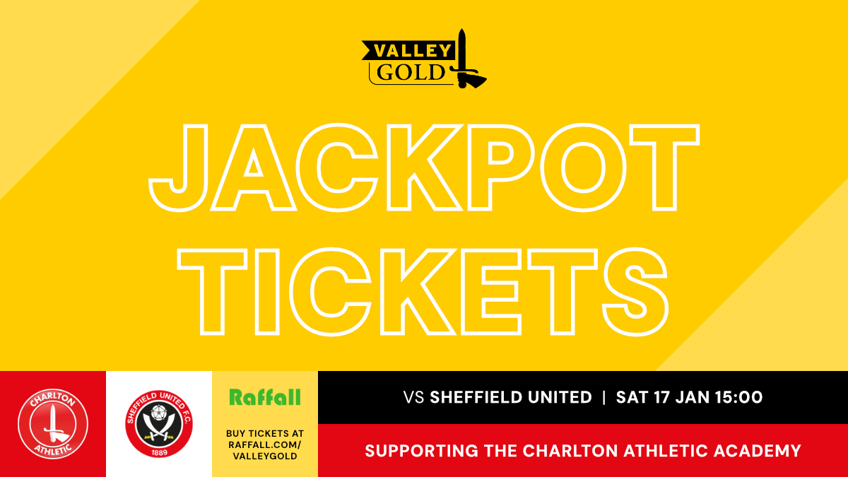 Be in with a chance of winning up to £2,000 during the half-time interval of Charlton’s EFL Championship home fixture against Sheffield United with Valley Gold Jackpot Tickets.