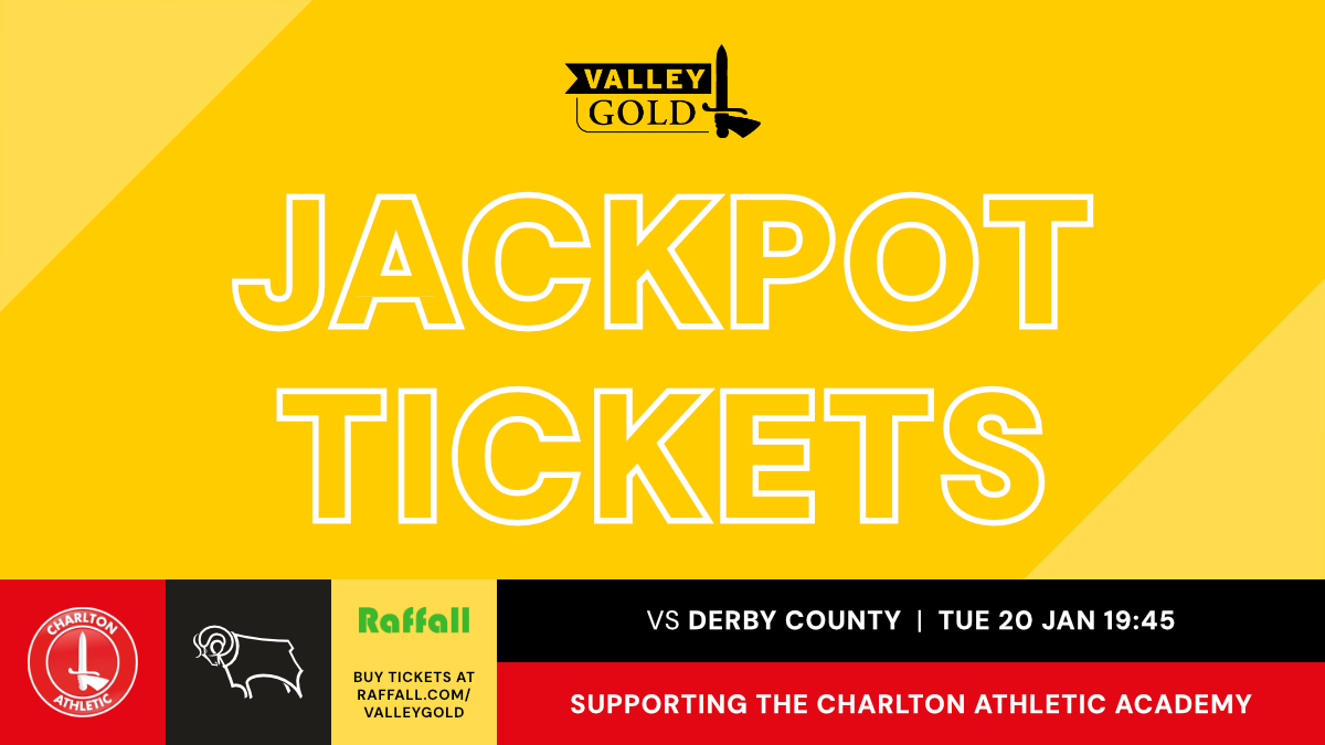 Be in with a chance of winning up to £2,000 during the half-time interval of Charlton’s EFL Championship home fixture against Derby County with Valley Gold Jackpot Tickets.