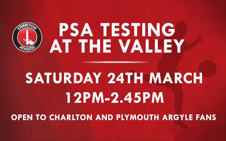 Saturday’s home game against Plymouth Argyle at The Valley is Prostate Cancer and Men’s Health Awareness Day